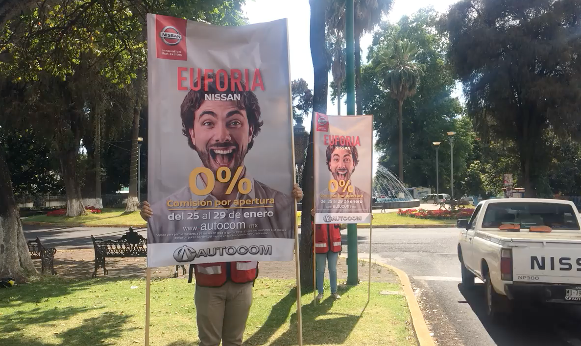 Se realizó una activación con lonas y volanteo en distintos puntos de la ciudad de forma simultánea en la que se colocaron banners gigantes de forma estrategia en puntos de impacto, esto complementado con un esfuerzo de volanteo en el mismo punto.