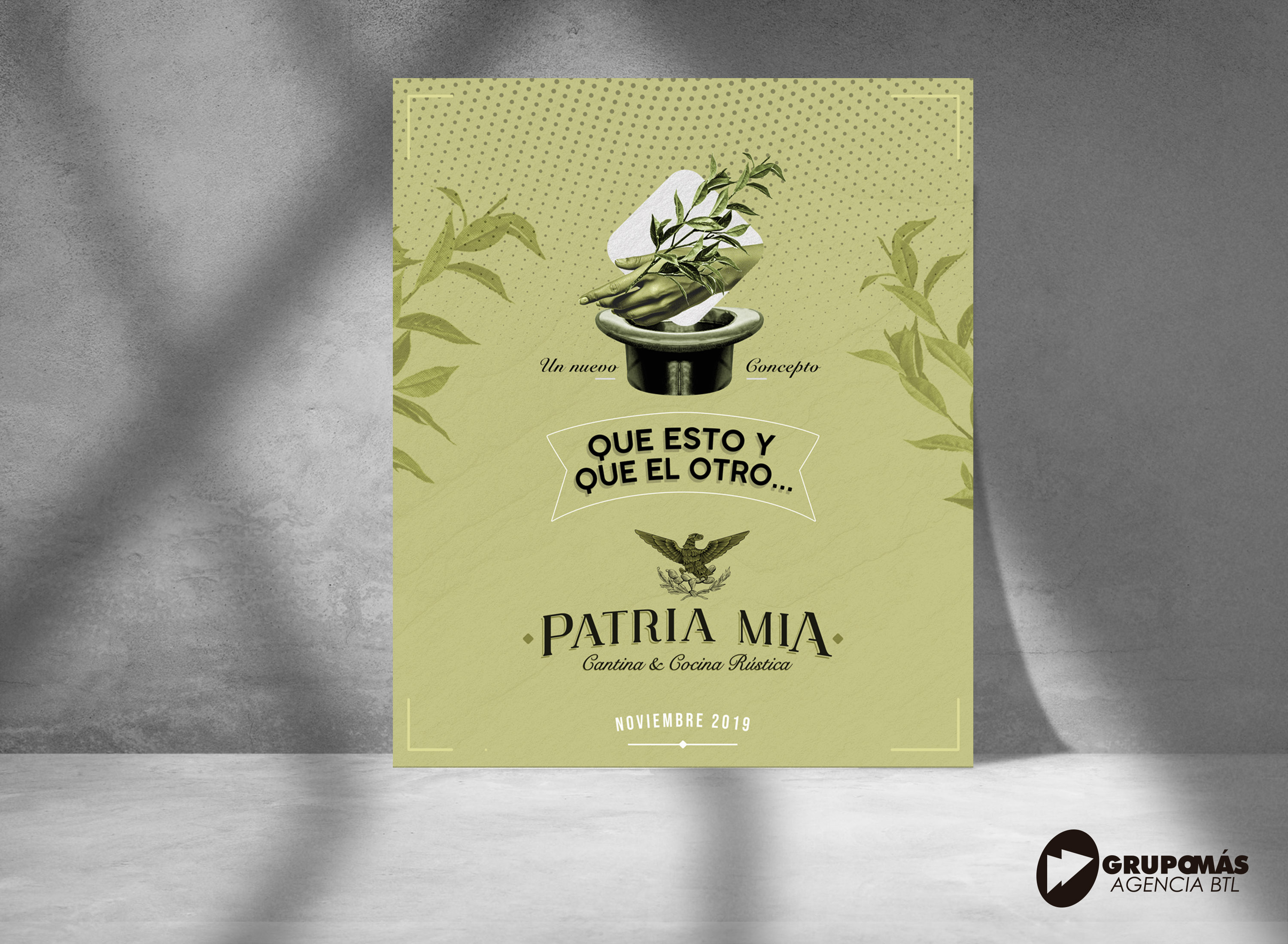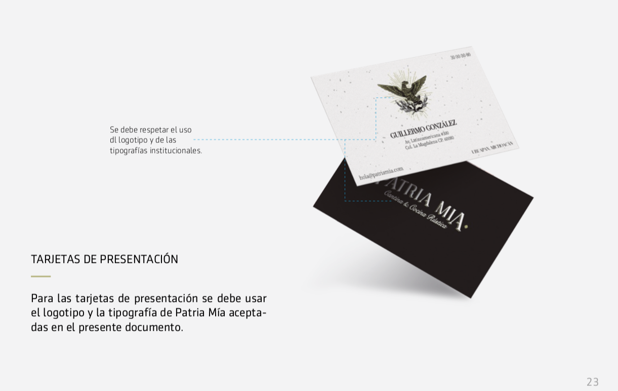 Se realizo el diseño de la marca para el restaurante cantina Patria Mia, ubicado en Uruapan Mich. Patria Mia se busca posicionar como una referencia en lugares para salir a comer y tomar con estilo. El desarrollo de la marca fue integral desde marca, aplicaciones, social media y estrategias de comunicación.